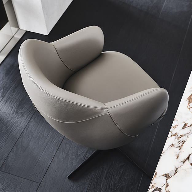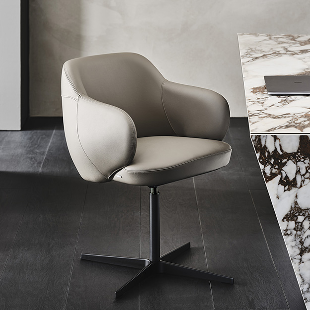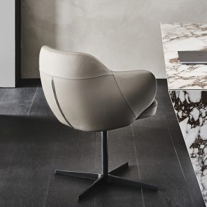 The Cattelan Italia Bombe X Office Chair features an upholstered seat with an elegantly curved arm and back rest. The 360° swivel frame features a central column which meets an X-shaped base. Select from a wide range of finishes for the frame and seat.