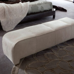 Bench available in first grade leather, nabuk leather, velvet or suede fabric. Stainless steel feet.