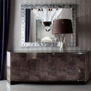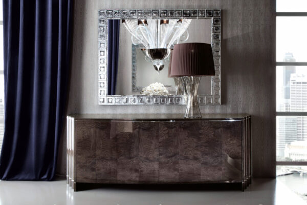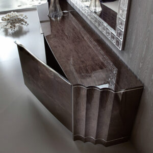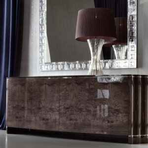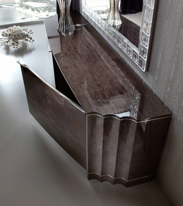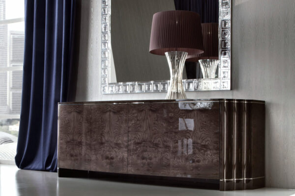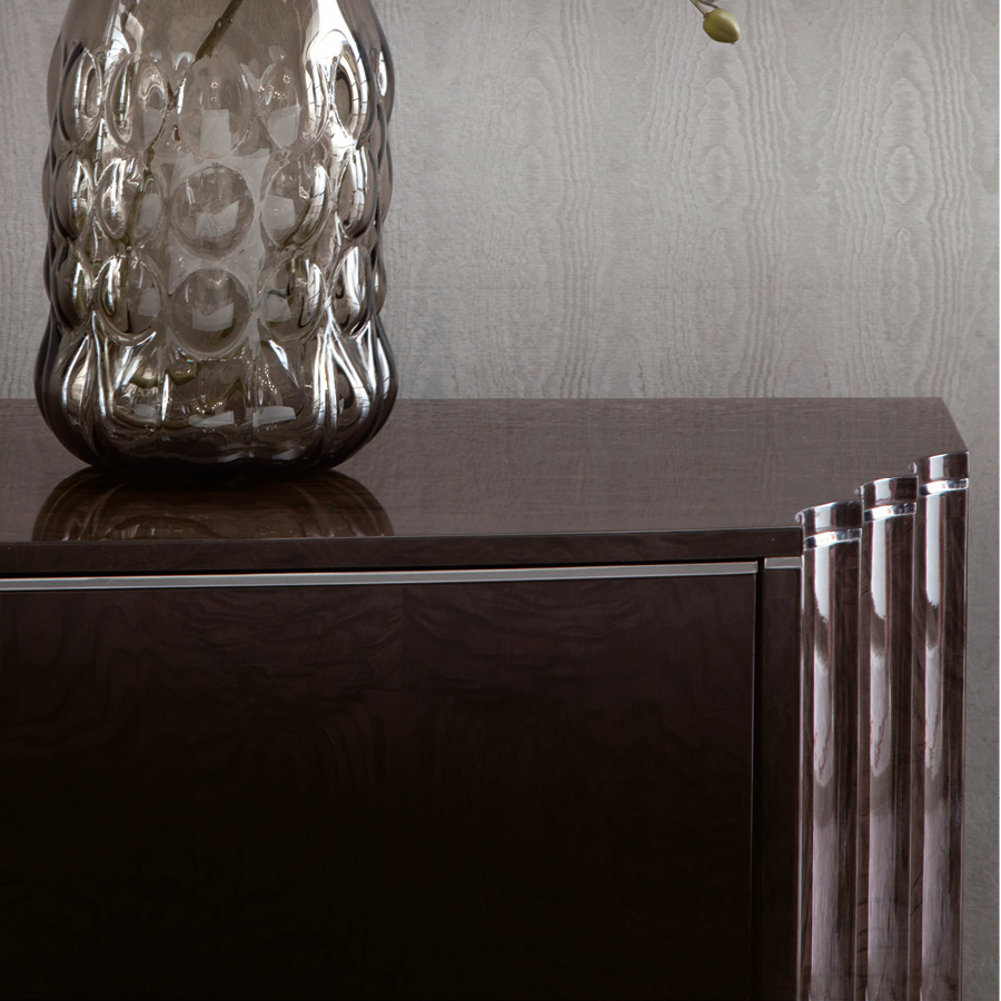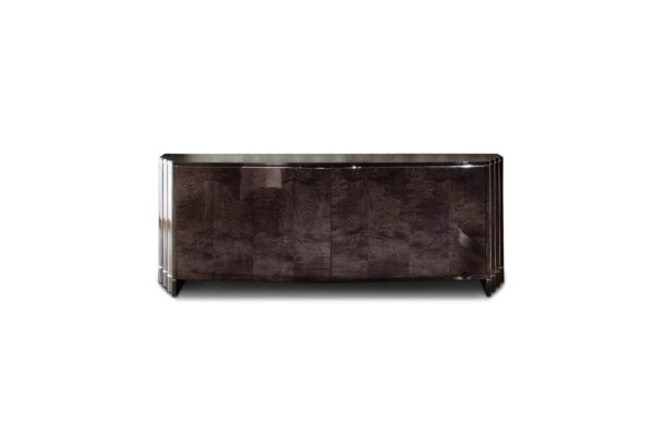 2 doors buffet with combination of moka japanese tamo burl veneer in high gloss polyester finish.