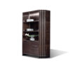 Double Bookcase finished in moka japanese tamos burl veneer in high gloss polyester. 8 wooden shelves and special led light sytem including touching switch. 2 doors, 2 small drawers and 2 file drawers covered with “Moresco” leather.