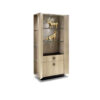 Single Bookcase finished in moka japanese tamos burl veneer in high gloss polyester. 2 wooden shelves and special led light sytem including touching switch.1 door, 1 small drawer and 1 file drawer covered with “Moresco” leather.