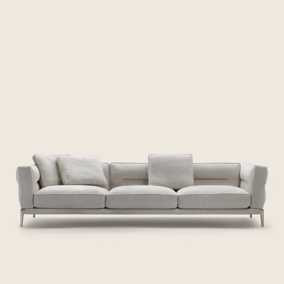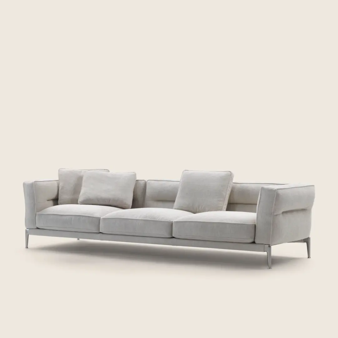 The Adda sofa features a clean, contemporary style. Its lightweight structure and generously filled goose-down cushions feature piping that highlights their soft, welcoming shapes. The Adda sofa rests on a metal base covered in leather or fabric, while the exposed cast-aluminum feet reveal their graceful, yet absolutely modern, vibe. All these Designs are Fully Bespoke . Our Expert Team can create any Design as per your specifications and requirements. For More information please contact our expert.