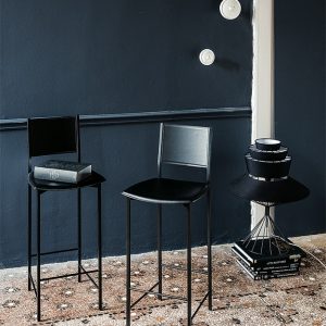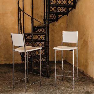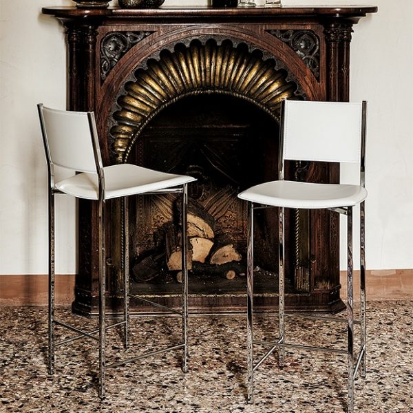 The Alessio is a high-back stool with a stylish upholstered straight back and seat complemented with a lacquered metal frame. Available in a choice of leather finishes.
