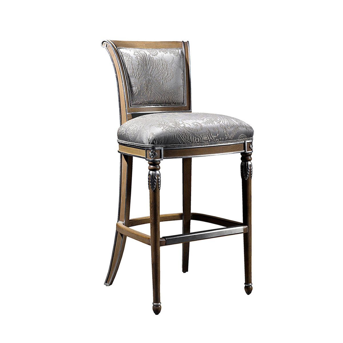 The classical Alex bar stool is an elegant piece with ornamental wooden legs highlighted by intricate carving. Ideal for bar or kitchen counters.