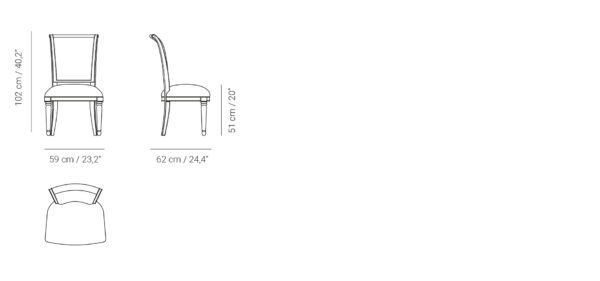 The rectangular and curved seat back offers maximum comfort making it extremely pleasurable to sit and enjoy a long and lazy meal in company. Check out our wide selection of fabrics and wood finishes.
