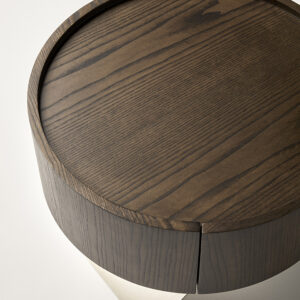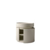 The round shape makes it easy to fit into smaller spaces and at the same time offers the necessary storage as a bedside table or side table.