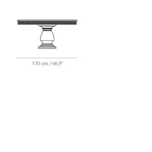 The Atenea round dining table has a markedly classical style. It consists of a carved pedestal leg, on which the olive tree root wood top rests. It can be customized in a wide range of finishes, although we recommend the colours that allow the natural knots of the olivato to be appreciated.