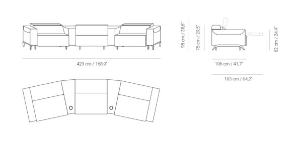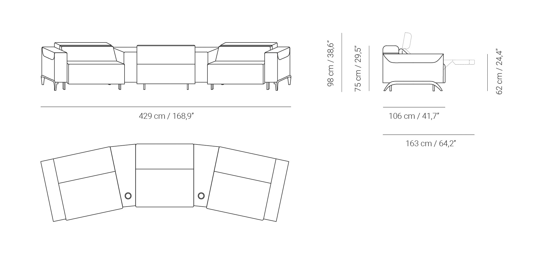 The Atlanta curved sofa with electric reclining mechanism is ideal for your home cinema room and also for your living room. Our Atlanta sectional recliner seating is considered part of our most contemporary collection, in line with current trends. A range of modular seating that offers design and comfort thanks to its electrical reclining system.