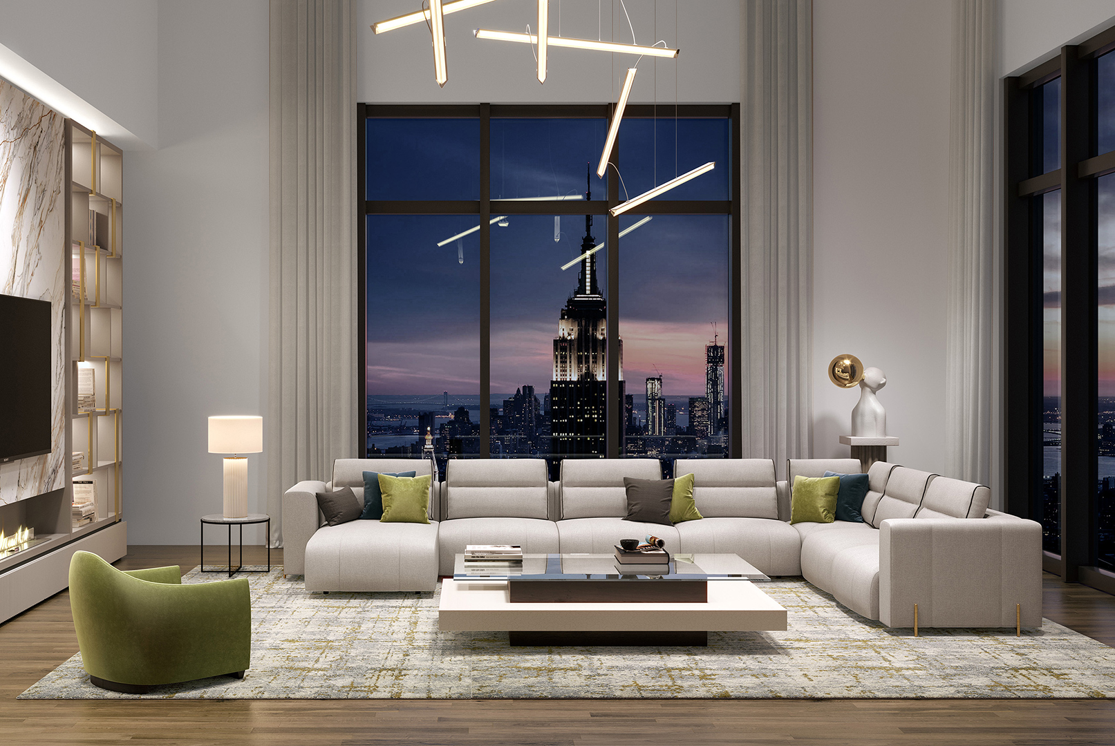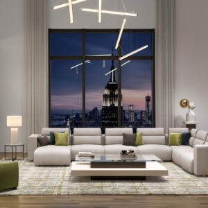 The Spanish designer Enrique Martí has drawn inspiration from American mid-century modern design by merging Art Nouveau and aerodynamics to create this distinctive collection of sectional sofas. Evocative of the first grand luxury hotels and casinos, opulent automobiles and extravagant interior design when furniture and decoration were valued as elements of distinction and class. Bellagio was born to pay homage to those marvellous golden years with an added contemporary touch.