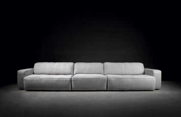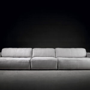 A family of contemporary power recliners with soft yet compact upholstery, their comfortable look invites you to lounge. The variety of modules lends itself to a large number of combinations that can be customized with a wide selection of fabrics.