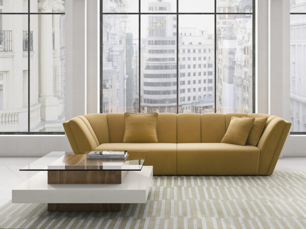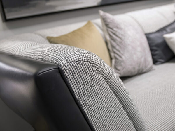 The BOWIE sofa, notable for its comfort and evident evolution towards a more contemporary style, is a must for any interior design project. The versatility of the BOWIE sofa lies in the upholstery options: choose just fabric or fabric combined with leather; for the inside seat back, choose between the handcrafted deep buttoned option or the ribbed back option. Available in 2 different sizes: BOWIE M, 250 x 110 x 75H and BOWIE L, 300 x 110 x 75H (cm)