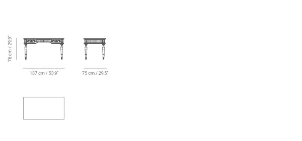 The classic Carmen desk is ideal for bedrooms or elegant offices. Made of carved wood, it has three small drawers and a marble top option. It can be customized in a wide range of finishes.
