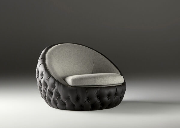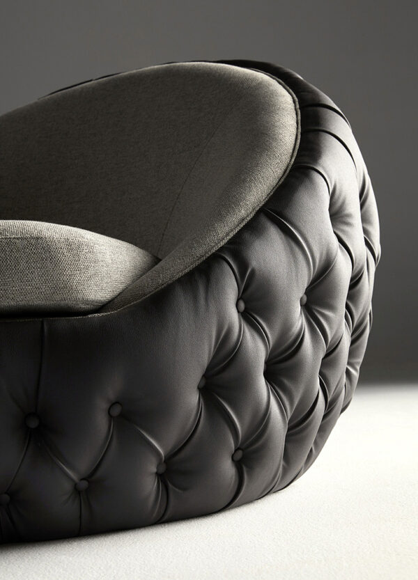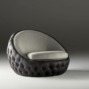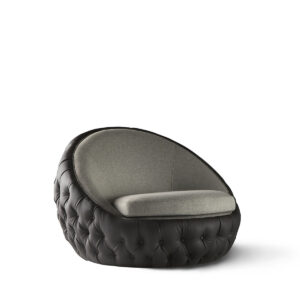 Caronte, designed by Maria Jose Guinot, is a low voluptuous armchair with generous curves. A striking piece that catches the eye whilst offering comfort and repose.