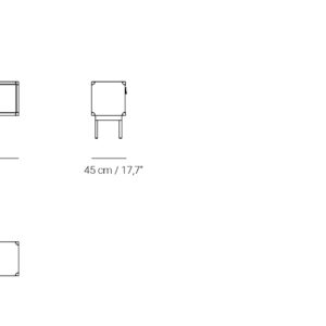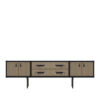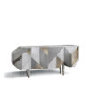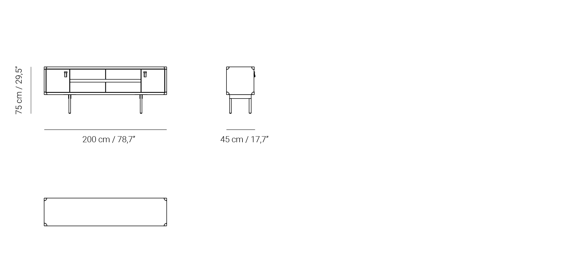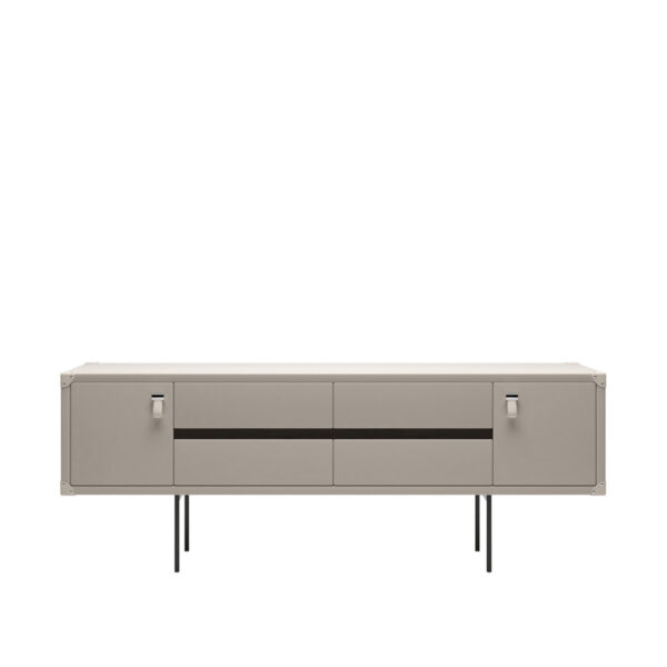 The Compass sideboard is a functional piece with a great design, an elegant piece of furniture with ample storage capacity. It is made up of three sections, the two side sections with a door and shelves inside and the central section with four drawers. It stands on stylised iron legs.
