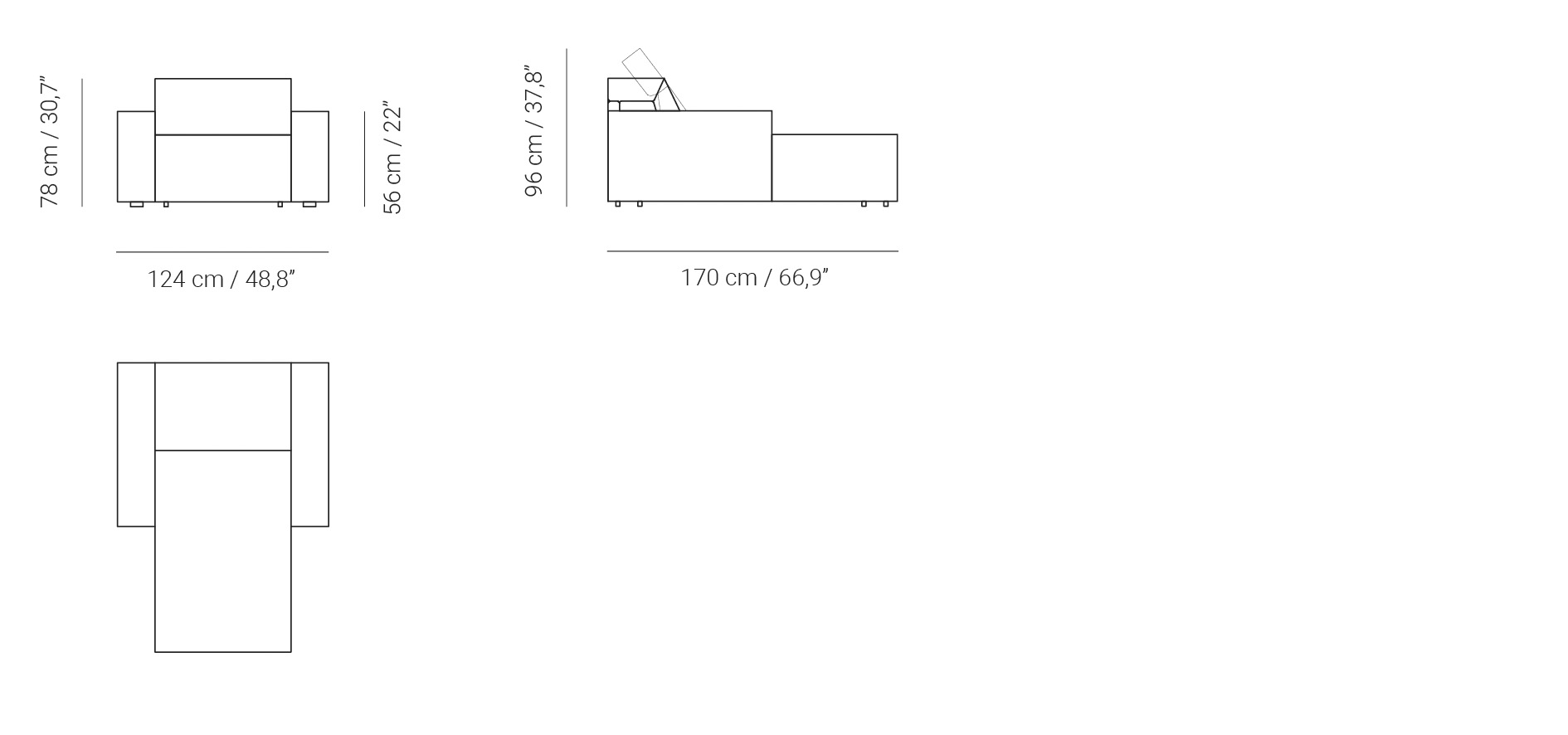 Depth: 170 cm / 66,93″