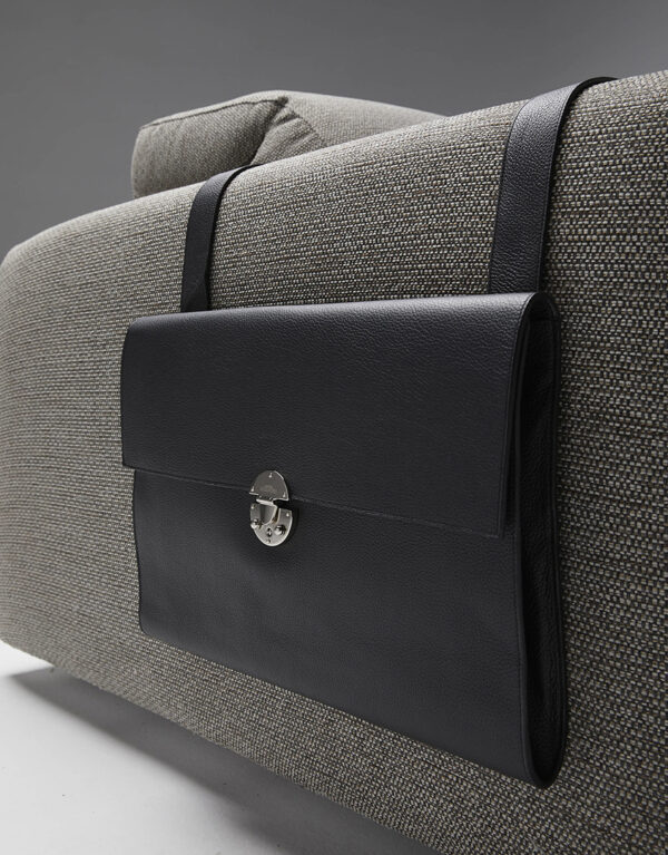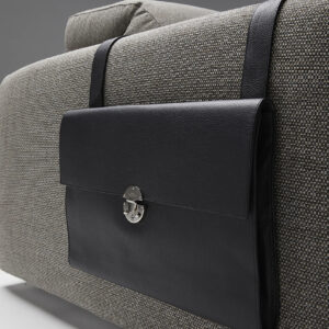 Cosmopol is a family of modular sofas with its impeccable proportions and a wide variety of compositions, but above all it is extremely comfortable. With its modern lines it is entirely functional and versatile. The collection includes an optional leather magazine bag available in 5 colours, which can be easily attached to the armrest of the side module.