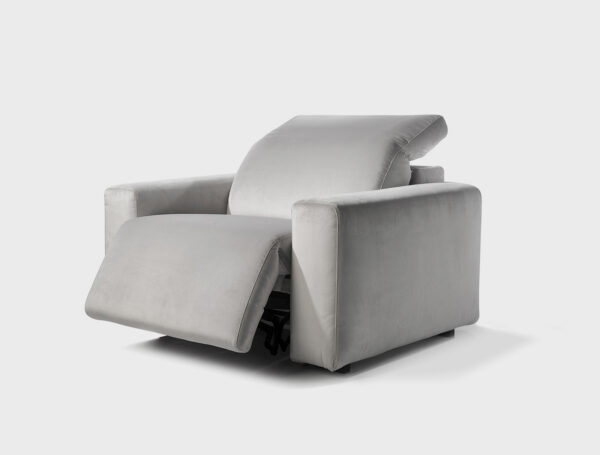 Cosmopol Relax electric reclining armchair. The perfect recliner for modern contemporary living spaces or home theatre rooms, enjoy the cinema experience from the comfort of your own home.