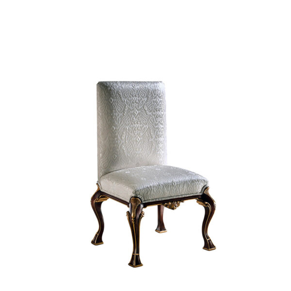 Daria is a sturdy chair designed by Jacobo Ventura. The high straight backrest and seat are upholstered. The cabriole-inspired legs have been given more volume to give the chair a strong character. Customizable.