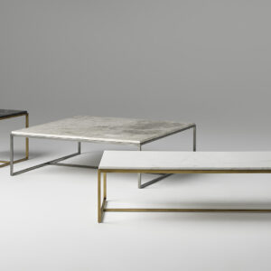 The Denver square coffee table is ideal for adding a contemporary touch to the living room. The Denver collection of contemporary tables and occasional furniture is distinguished by its light yet industrial-looking iron bases, which are balanced by three different types of tabletop: marble, wood or faux leather. The iron legs are available in a wide range of finishes.