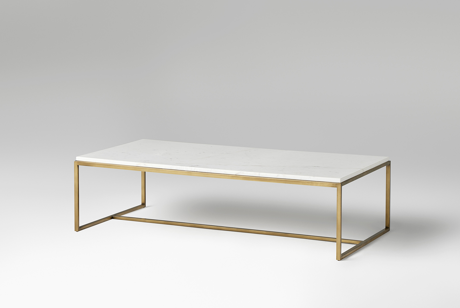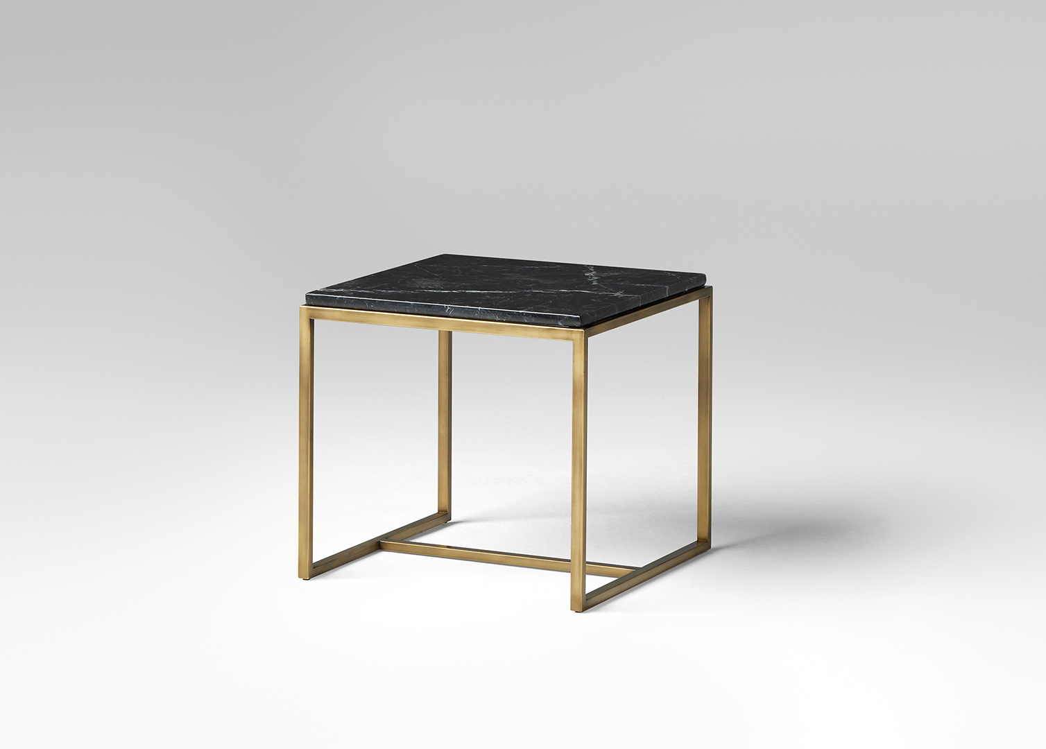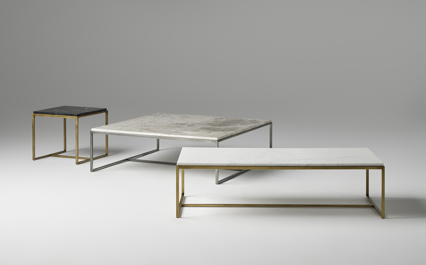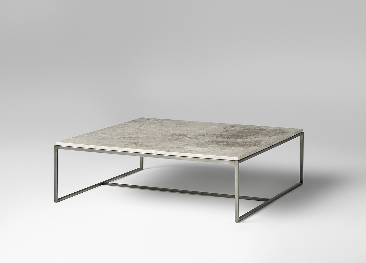 Denver is a square coffee table ideal for placing next to the sofa. The Denver collection of tables and occasional furniture, contemporary in style, is distinguished by its light yet industrial-looking iron bases, which are balanced by three different types of tabletop: marble, wood or synthetic leather. The iron legs are available in a wide range of finishes.