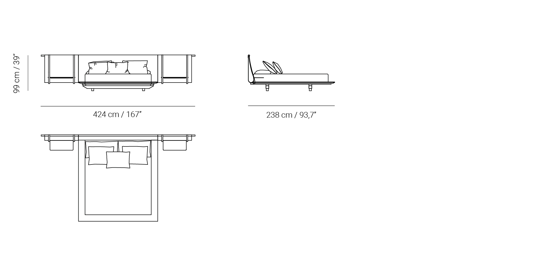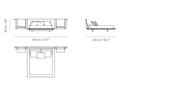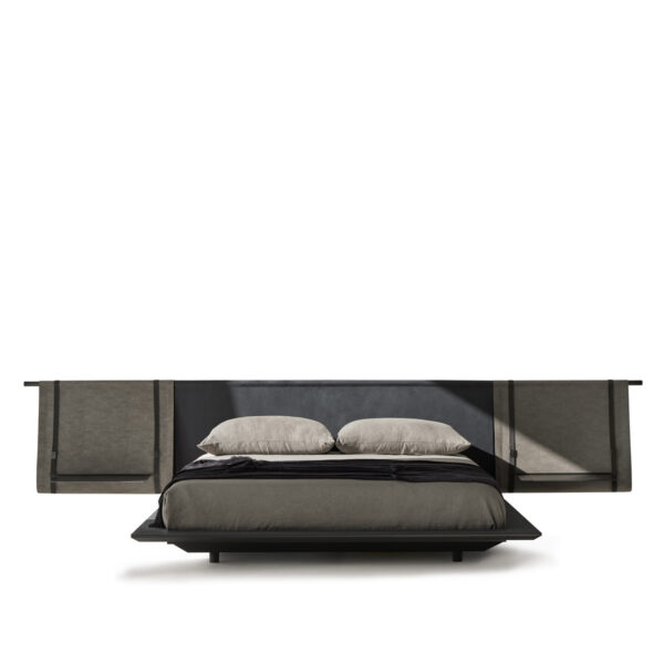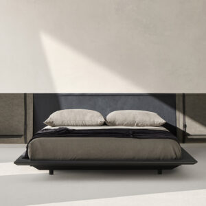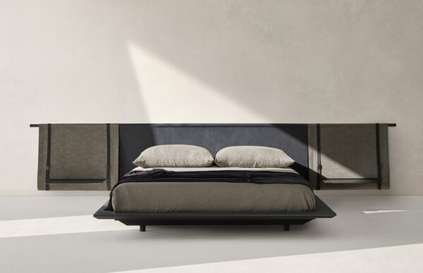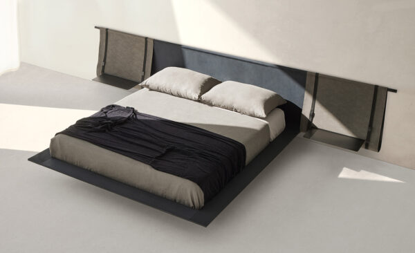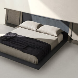 The truly distinctive feature of the Dune Bed lies in its original bedside tables integrated into the headboard, with clean, flowing lines like sand dunes adding to its appeal and functionality. Its cleverly conceived design harmonizes perfectly with the modern aesthetic of the bed, which also includes upholstered bases to ensure maximum comfort and support, and is manufactured for a 180×200 mattress (not included). Perfect for creating an oasis of relaxation and serenity in the bedroom.