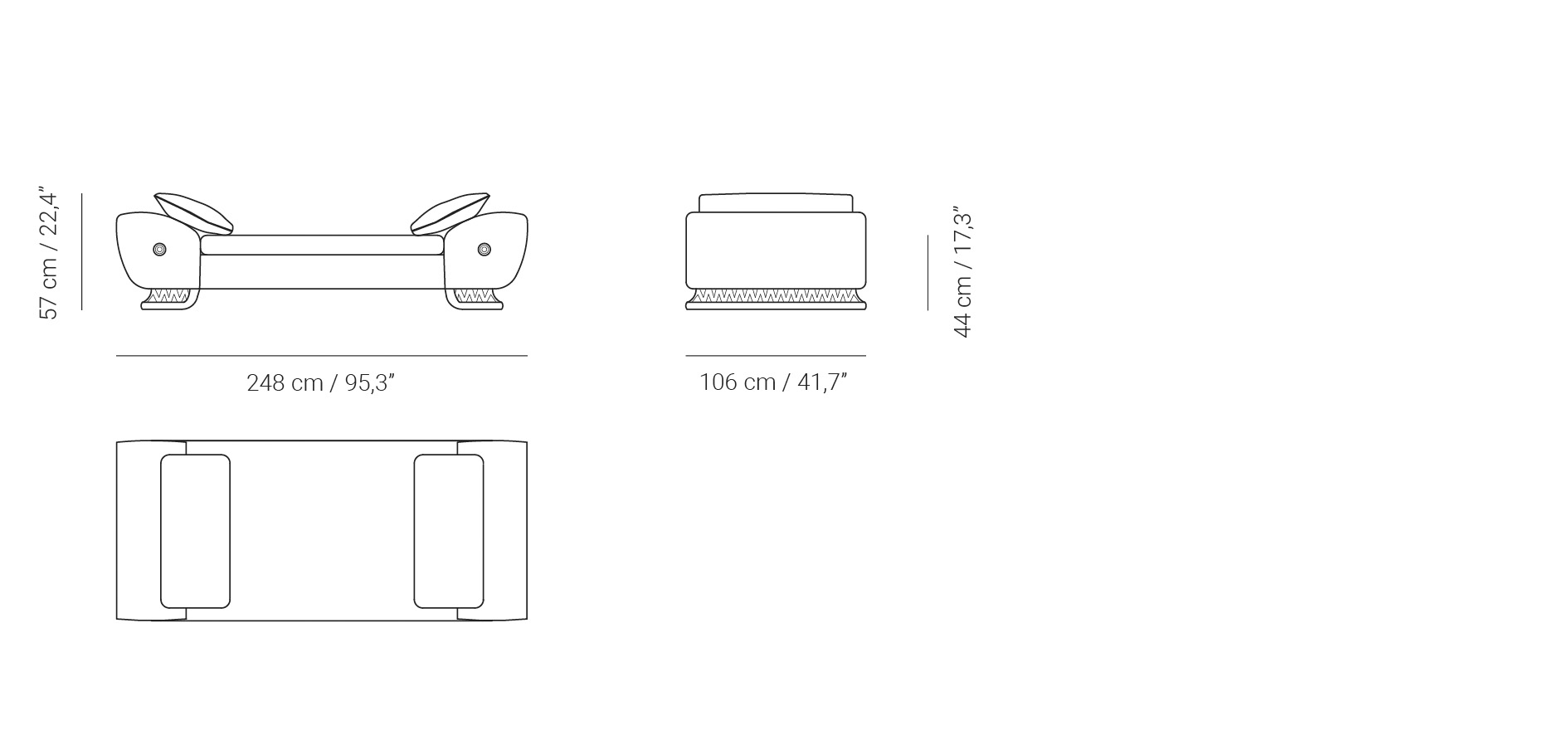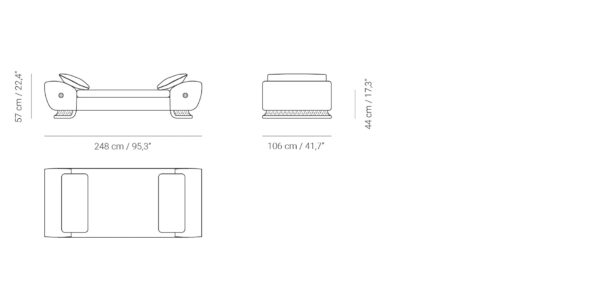 The Felipe daybed has wide padded arm rests featuring a pleated accent with a metal decorative stud in the centre. Combine with the Felipe sofa and add a touch of sophistication to the space.