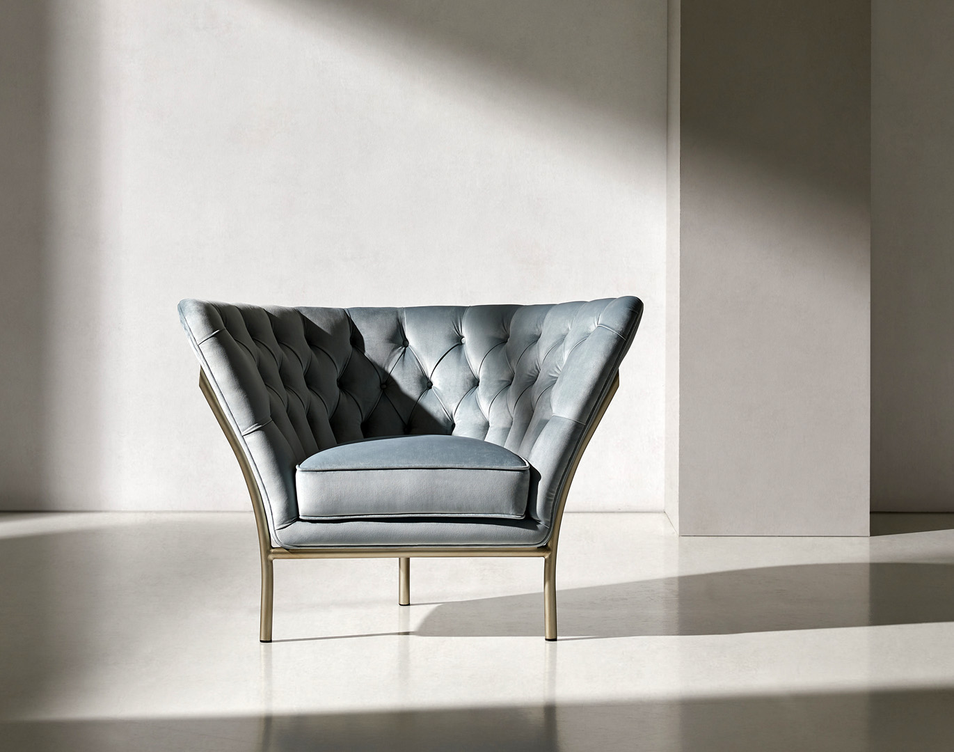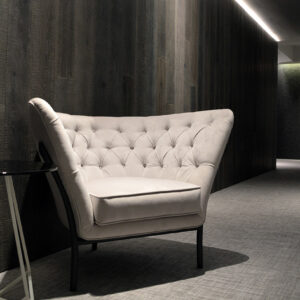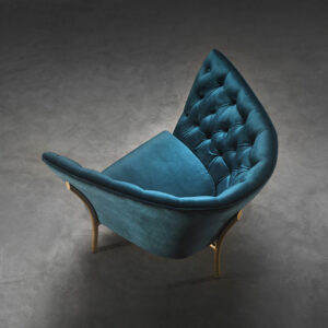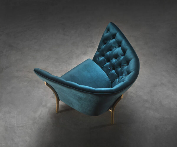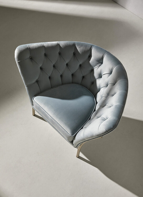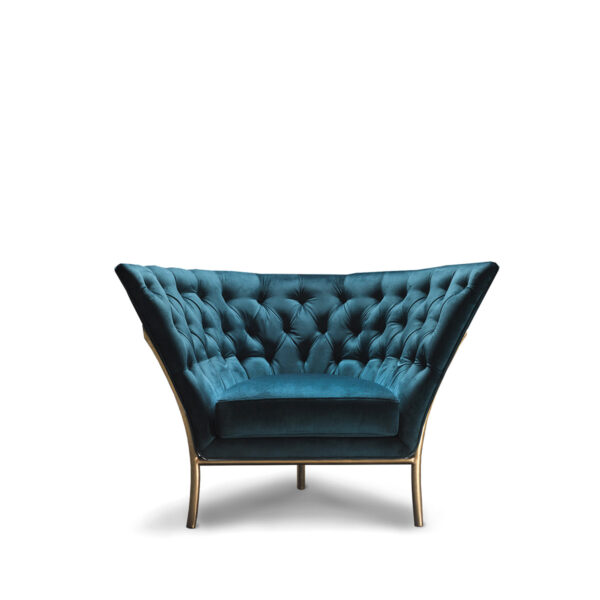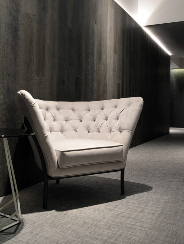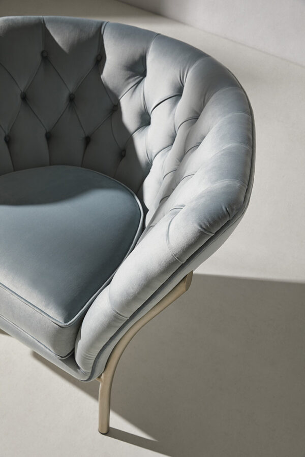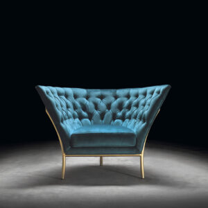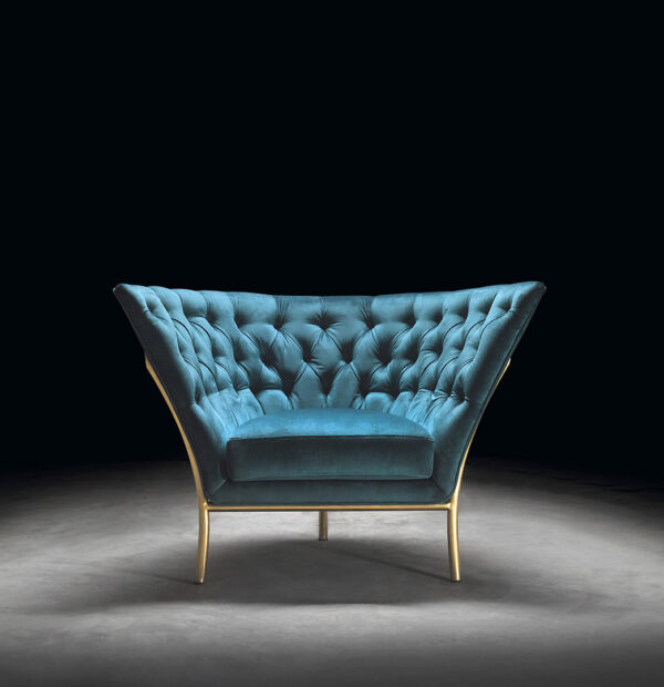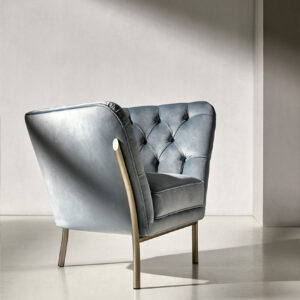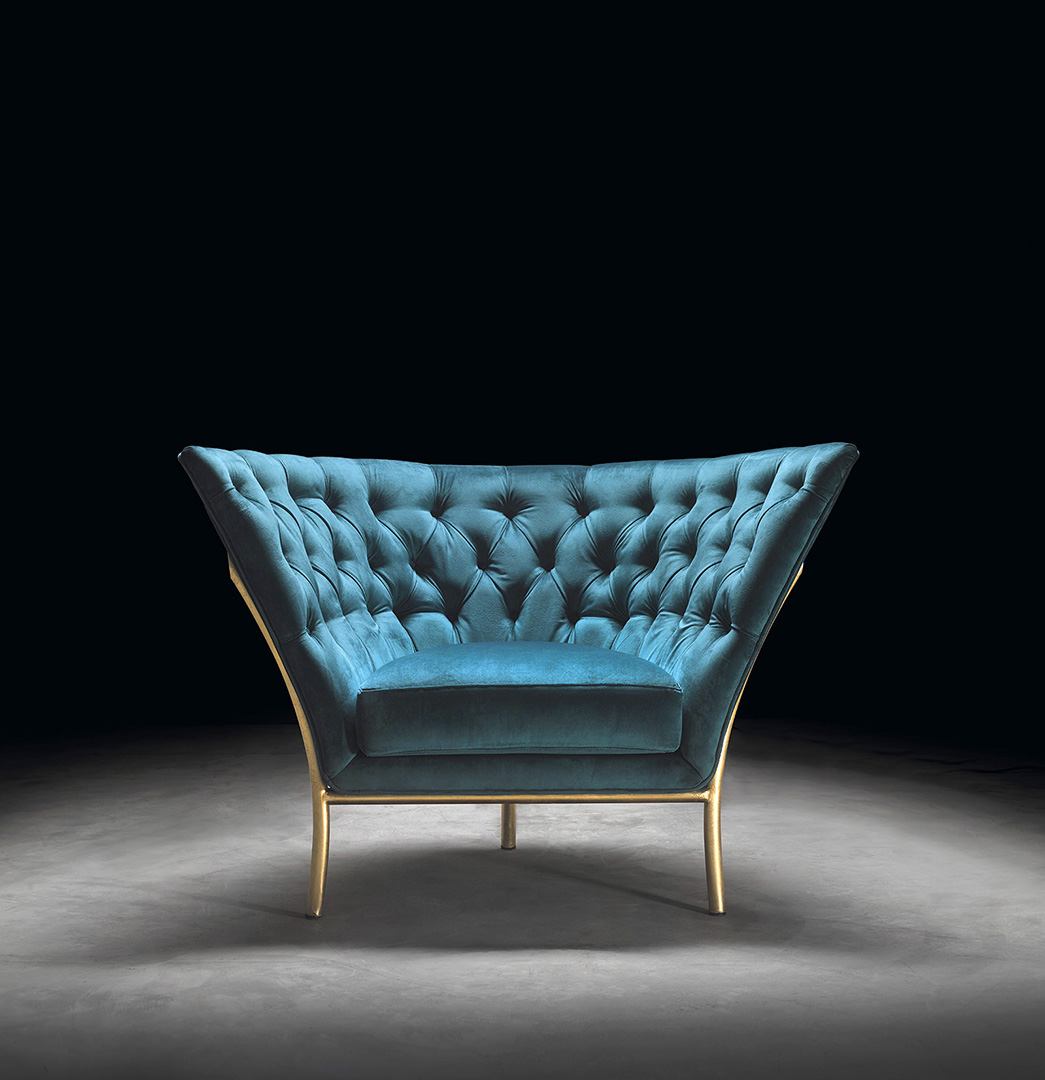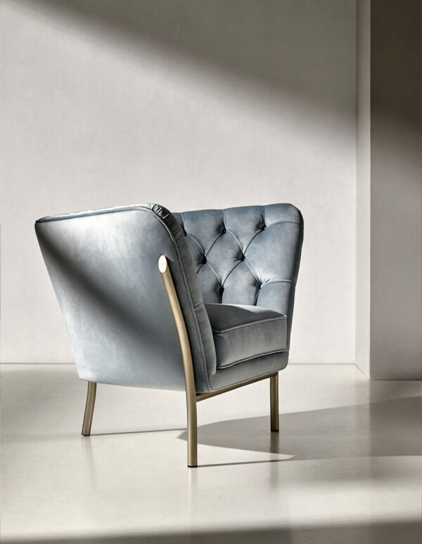 The Flute armchair is a piece with a high degree of individuality. It is produced in a wide range of metal finishes and upholsteries.