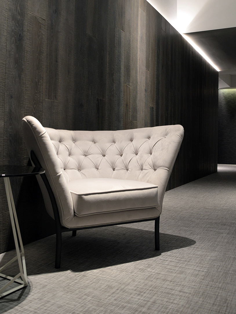 An original design by Michele Mantovani’s studio for Alexandra where he plays with asymmetries and harmonies. Comfort and style come together in one piece attracting attention with its personality and authentic aspect. Flute redefines classic textures and shapes to create a timeless piece where design, form and function unite.