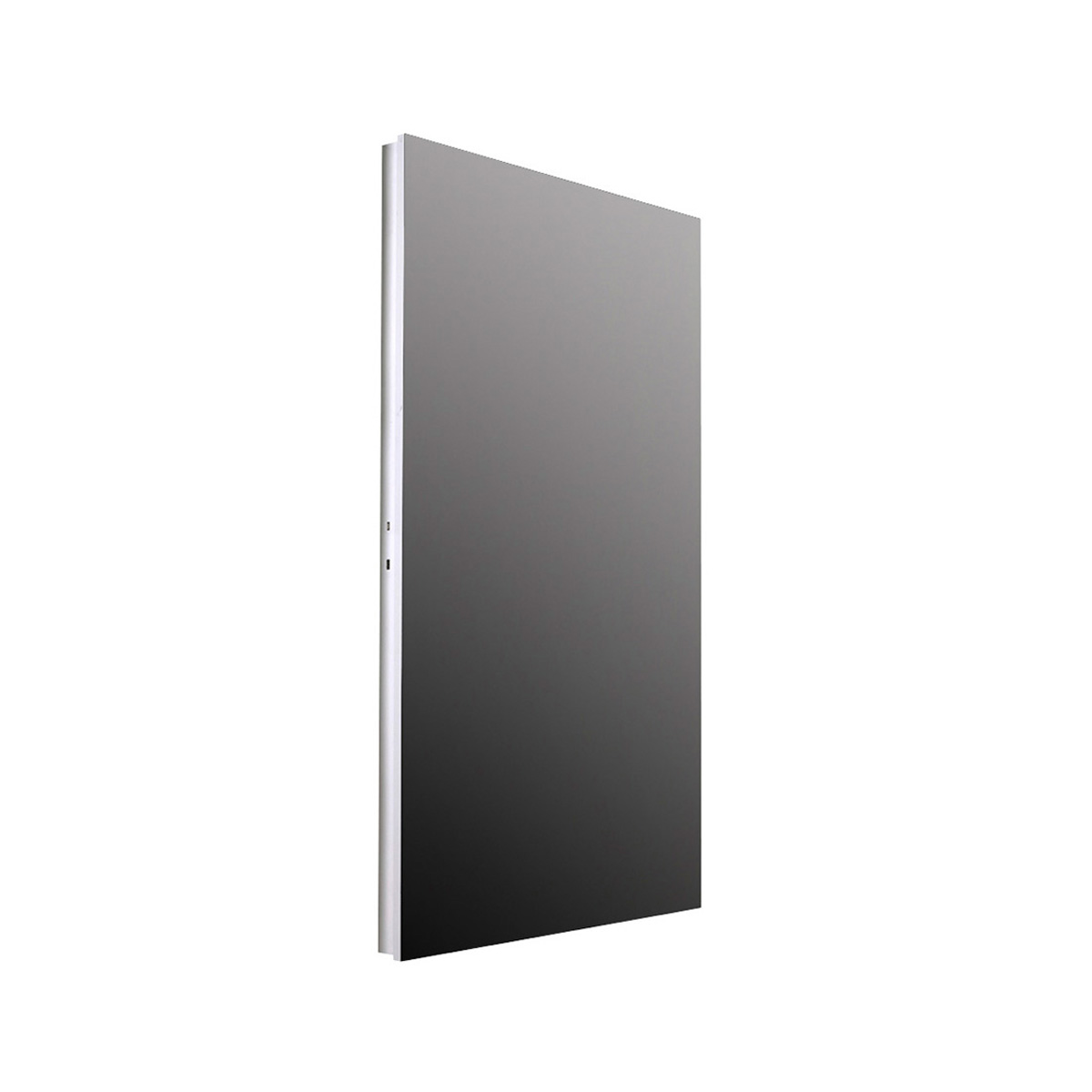 Modern, rectangular mirror with aluminum frame.