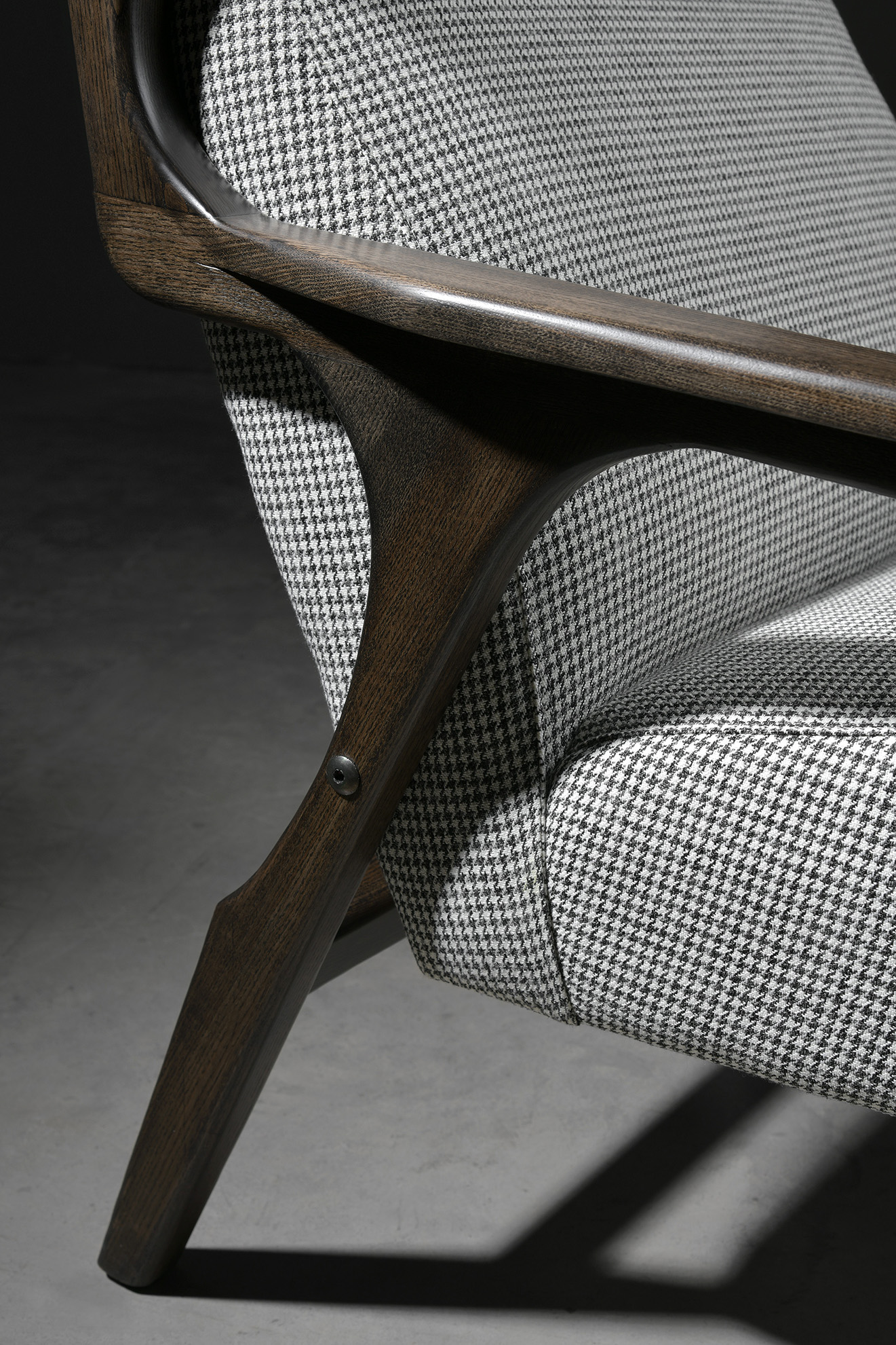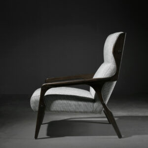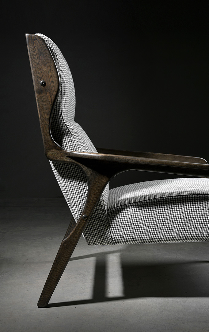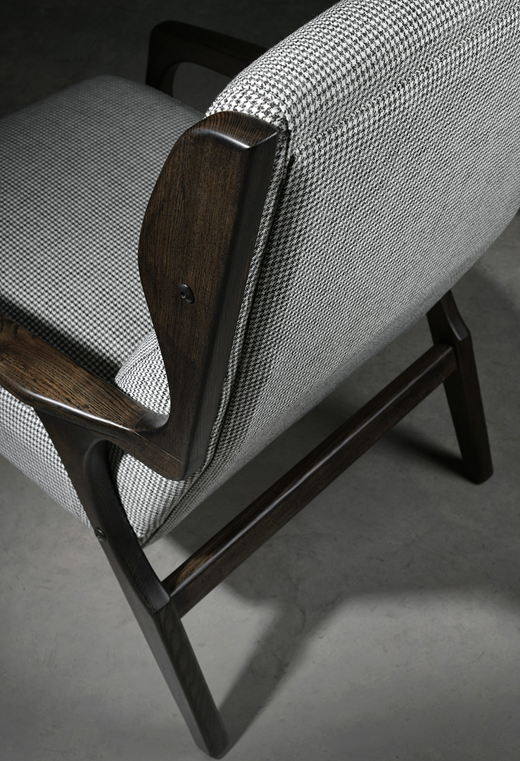 Gio is a cosy upholstered armchair with an ash wood frame. A light, conservative design ideal for living rooms as well as for occasional seating in bedrooms.