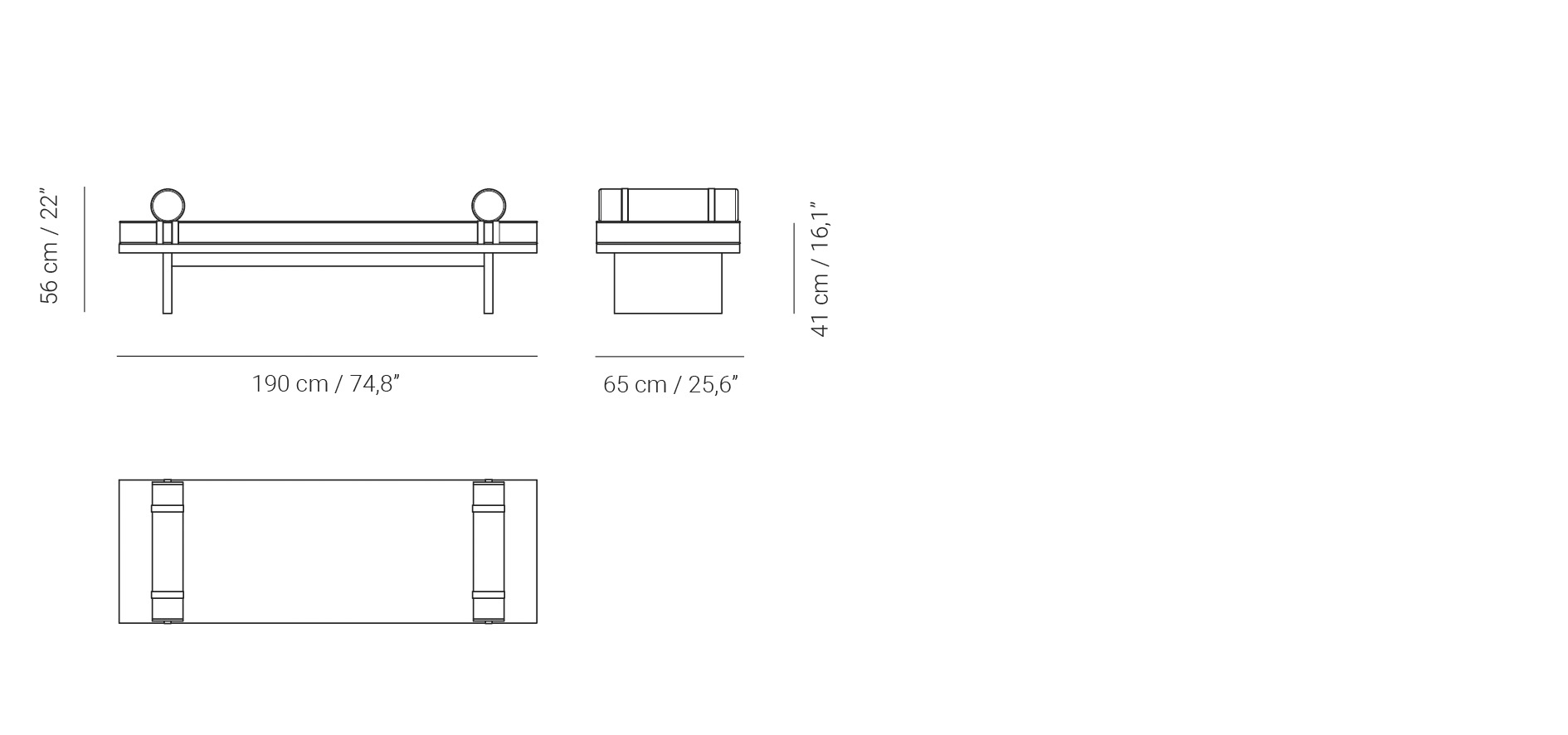 Width: 190 cm / 74,80″