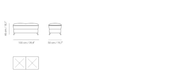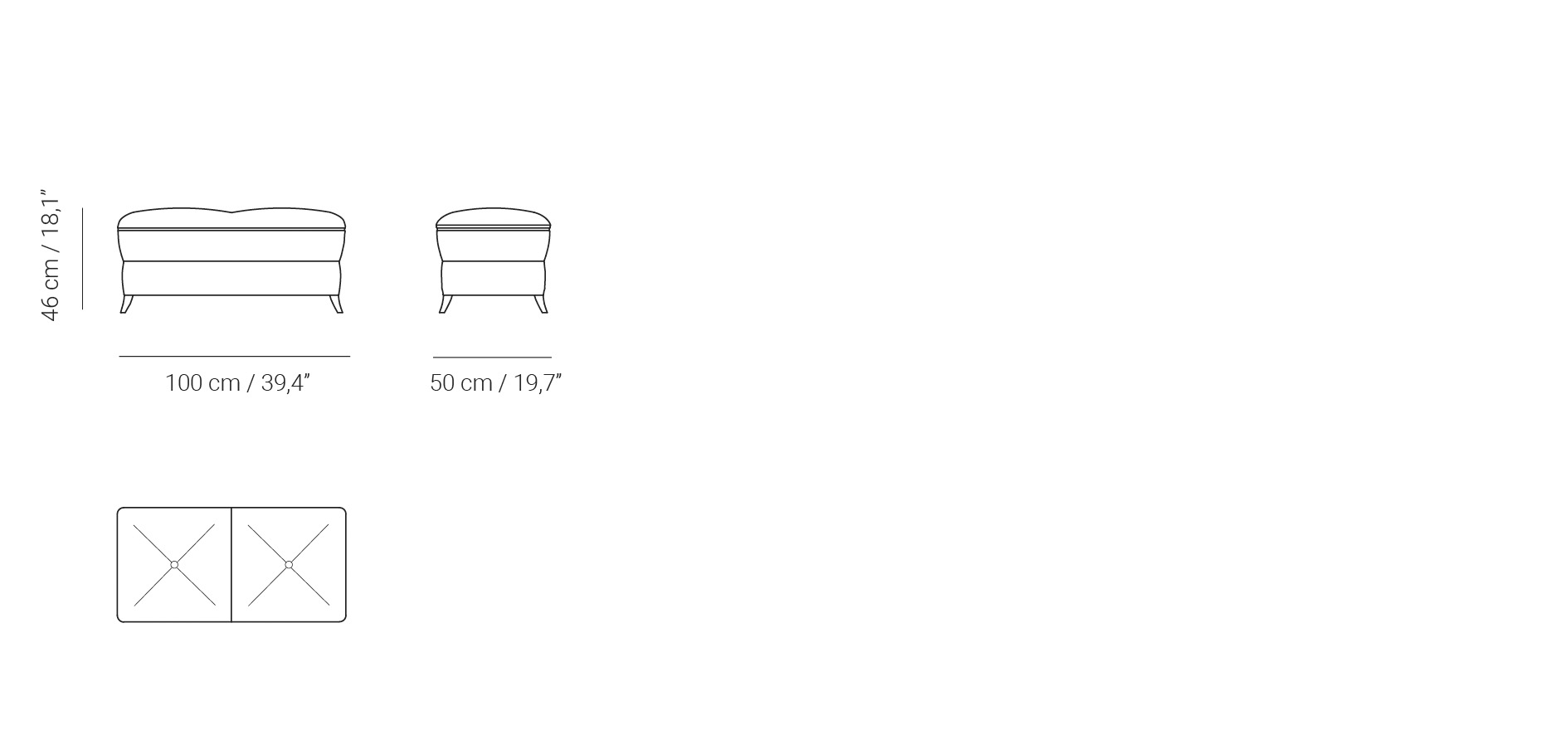 An elegant piece with simple lines accentuated by small touches, like the piping around the seat cushion, the central button detail and the splayed wooden feet available in various finishes. A wide range of fabrics, eco-leather and real leather options for upholstery.