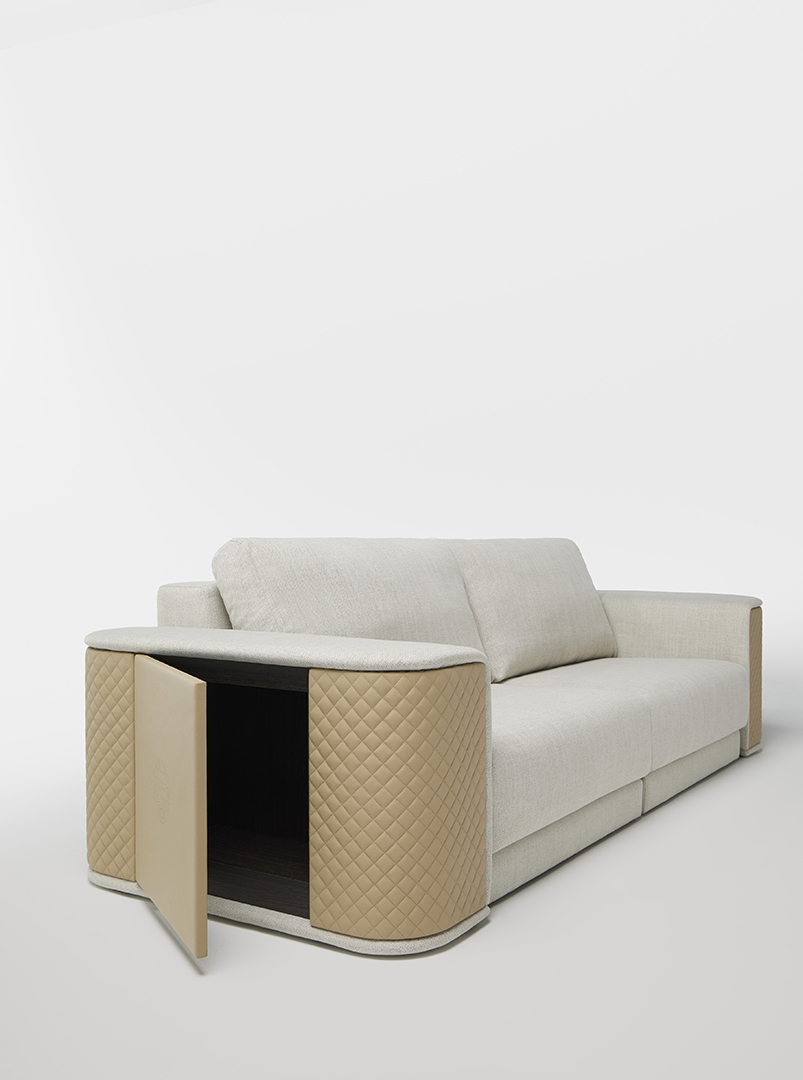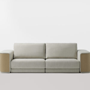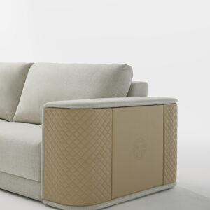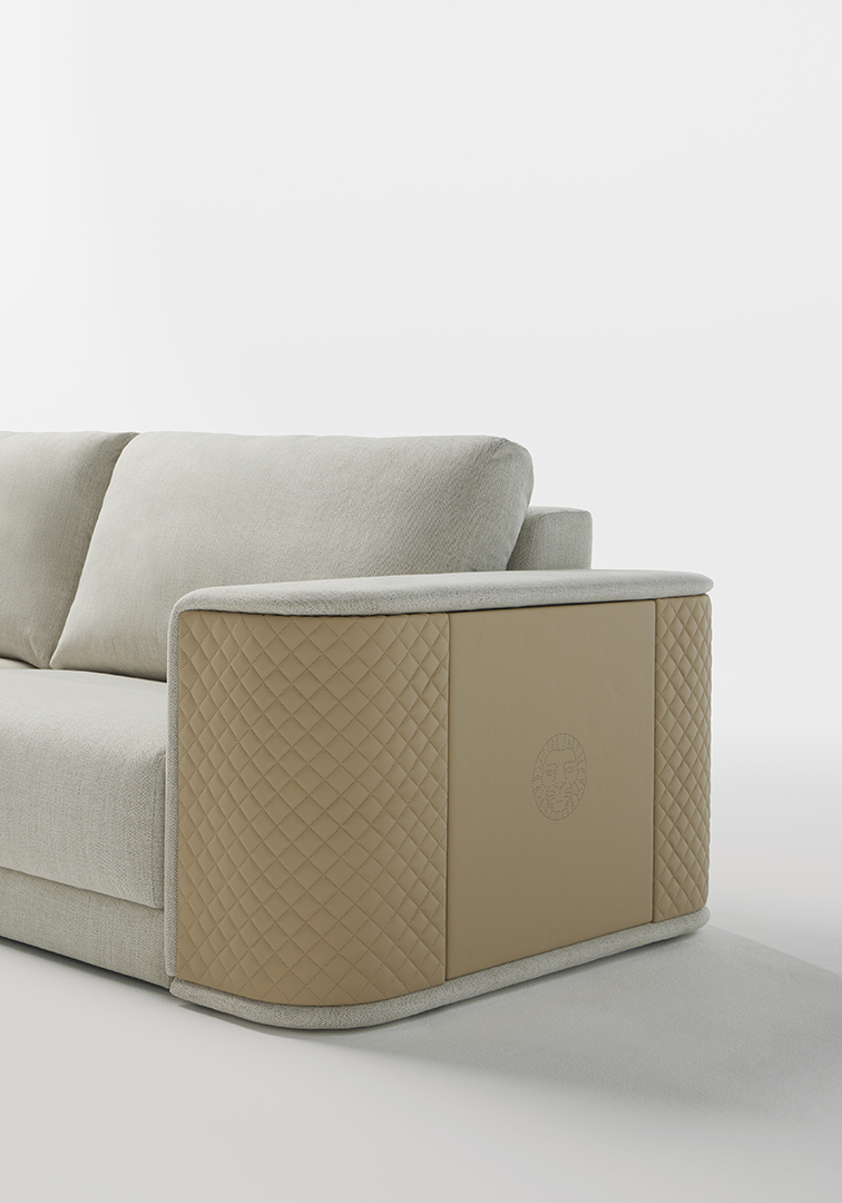 MASTER-L is a sofa designed by Jacobo Ventura. It pays exquisite attention to every detail, with its arms in embroidered leather and the body upholstered in fabric. There is the possibility of combining five colours of embroidered natural leather with an extensive selection of textiles. Available in 2 different sizes: MASTER M, 280 x 110 x 90H and MASTER L, 400 x 110 x 90H (cm).