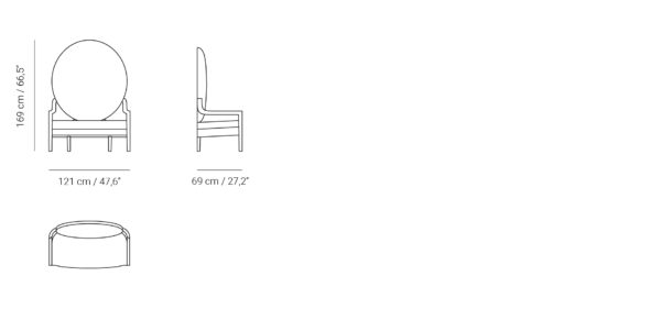 Moon is a stunning loveseat with a lavish round seat back resembling the moon.