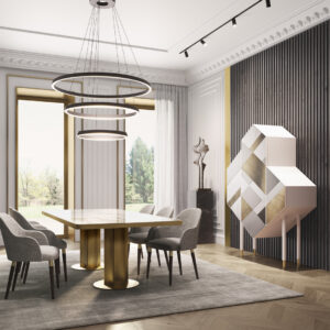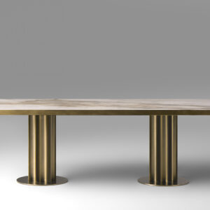 Jacobo Ventura has designed the Mykonos tables as an expression of discreet luxury capable of bringing beauty to such an everyday piece of furniture. Inspired by the architecture of ancient Greece, the legs of the table evoke temple columns and the tabletop is reminiscent of noble panelling.