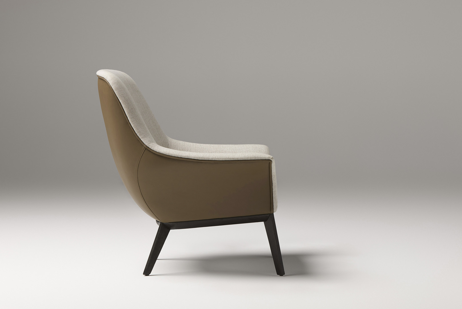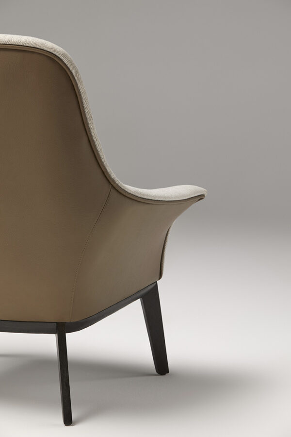 Palma is primarily elegant with its combination of materials. Crafted in every angle particularly its eco-leather upholstered back. An armchair with perfect proportions highly suitable next to any sofa without overshadowing.