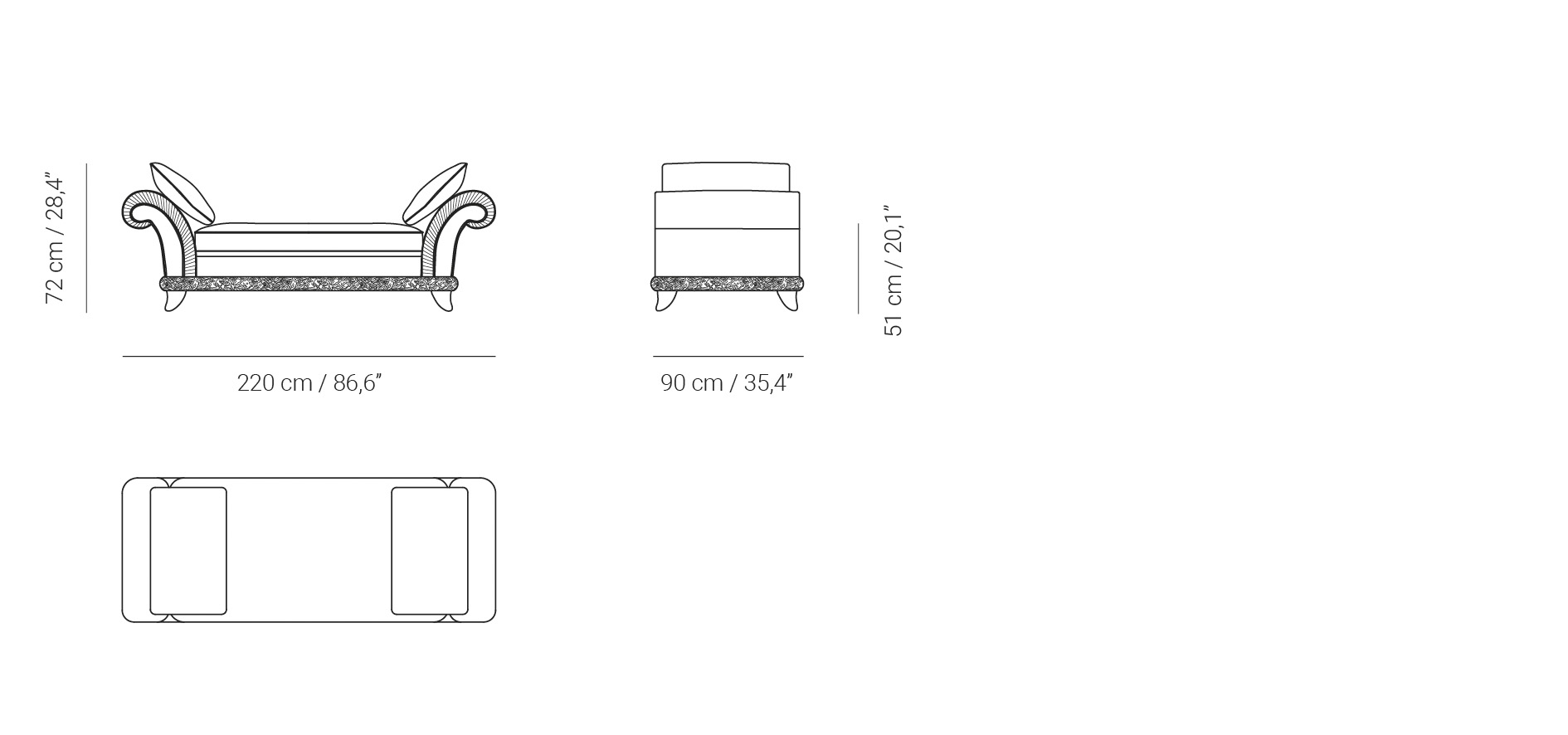 Width: 220 cm / 86,61″