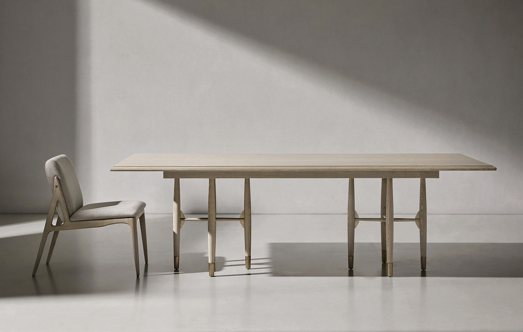 The Sou modern dining table is part of The One collection, a collaboration between Alexandra and the prestigious Asian designer Ben Wu. Its refined design fuses the elegance of ancient Chinese tradition with modern European aesthetics. Shapes inspired by the Qi-Yun of Chinese calligraphy, symbol of the charm and innate beauty of a work of art, combined with the sobriety of Western architecture.