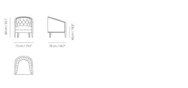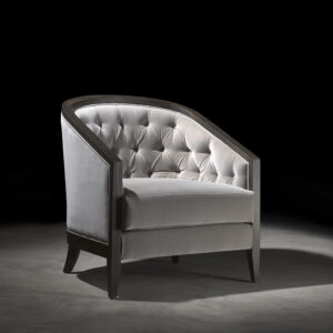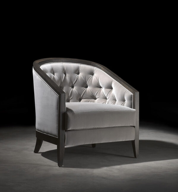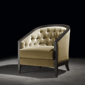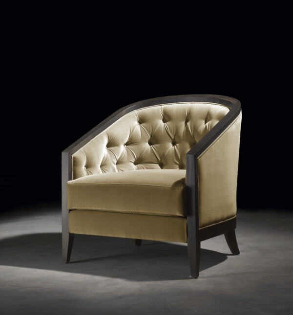 The wooden structure is exposed, allowing you to create harmonious combinations or contrasts with the upholstery. With a wide range of fabrics and wood finishes. Available in two versions, with the interior of the backrest upholstered in plain upholstery or with the handcrafted deep buttoned technique.