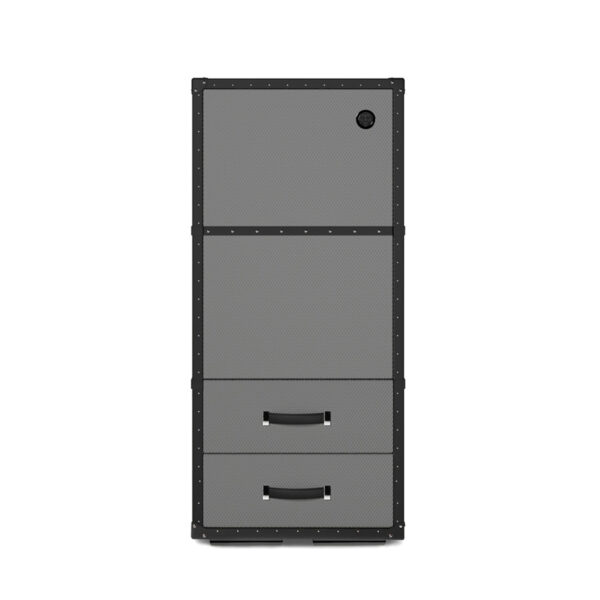 The Traveler cabinet has a compact size. An elegant cupboard with discreet dimensions, ideal for extra storage in small spaces without cluttering up the décor. A one-door low cabinet with interior shelves and two drawers in the lower part.