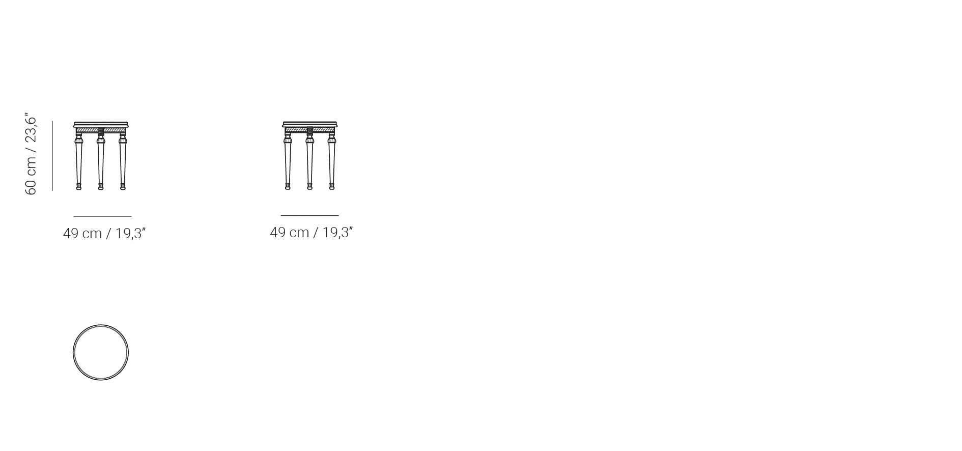 Versailles round side table inspired by the style of French palaces. The marble top is framed by a carved wooden border, which rests on turned legs. Available in a wide range of finishes.