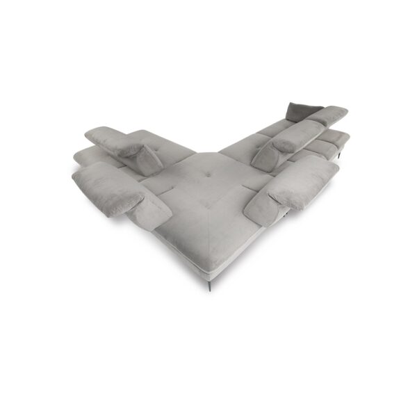 pinewood, multilayer and plywood covered with 100% polyester padding, additionally wrapped with thermo-bonded textile fabric coupled with cloth. Backrests rest on a metal mechanism*.