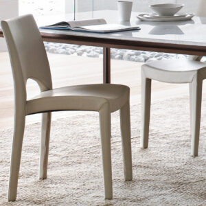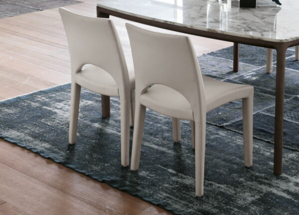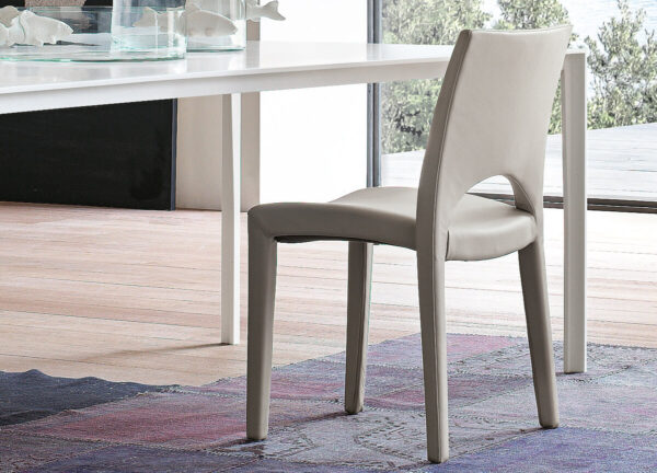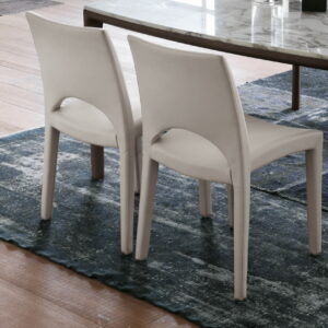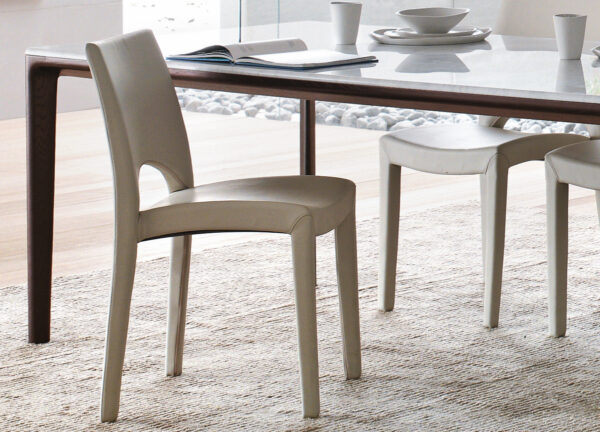 The Fedra dining chair by luxury Italian brand, Alivar. The frame is padded and has rounded edges and corners and the quality and finishing on this dining chair are exceptional.