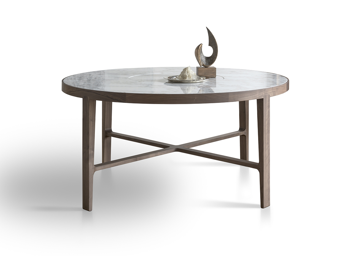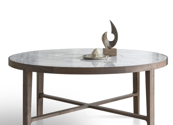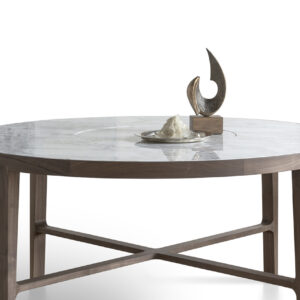 The beautiful Globe dining table has a solid wood frame and leg structure, which is available in lacquered ash. The table top has a choice of smokey grey glass or stunning marbles, There are two sizes available for the dining table 130cm or 160cm diameters.