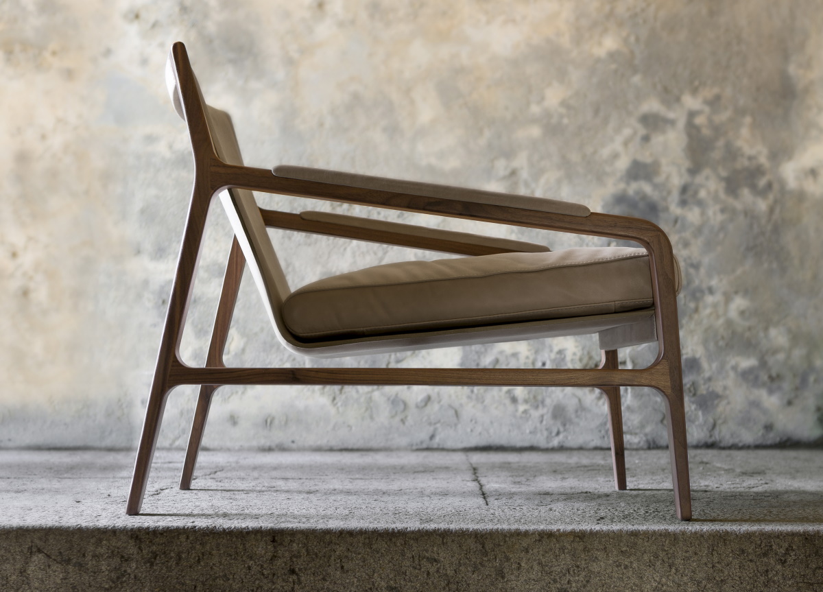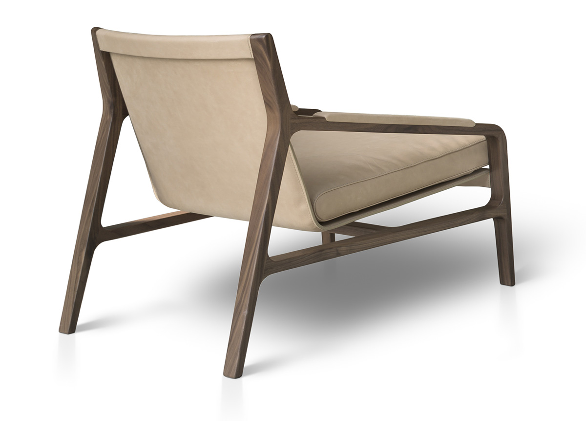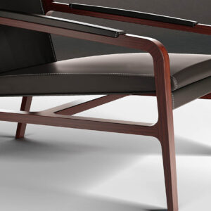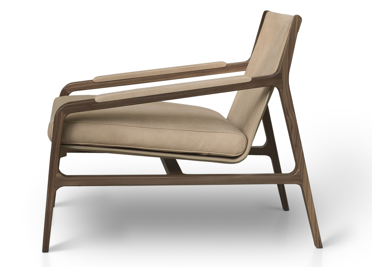 The Margot has a solid wood frame and legs, that can be made in either ash, which is stained in a variety of finishes, or in Italian walnut. The stunning, sculptural seat has been made from a solid sheet, which is covered in a polyurethane foam and upholstered in leather.