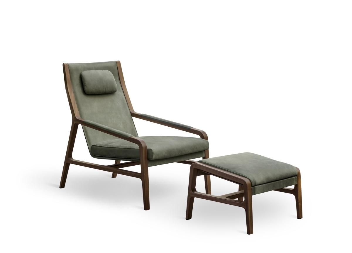 The Margot Relax has a solid american walnut frame and legs. The elegant sculptural seat has been made from a solid sheet, which is covered in a polyurethane foam and upholstered in leather with an adjustable magnetic headrest.