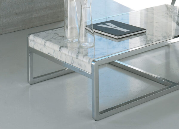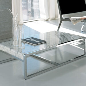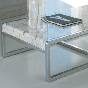 This luxurious modern coffee table is part of an exclusive range of coffee tables from Italian brand Alivar. The top curves over towards the base to provide a sleek finish to this contemporary piece. This Up coffee table is 50cm wide, and 88.3cm long.