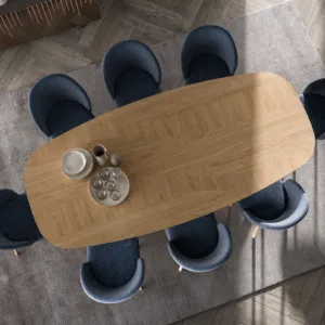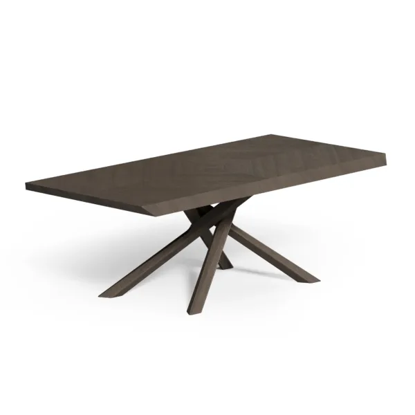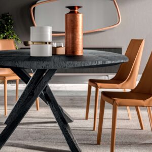Massive and sculptural fixed tables supported by the geometric envelope of the 4 legs that solidly support the top. The structure is in wood or metal, characterized by elegant finishes resulting from refined craftsmanship. A high-quality production designed to give importance to the spaces of the contemporary home.