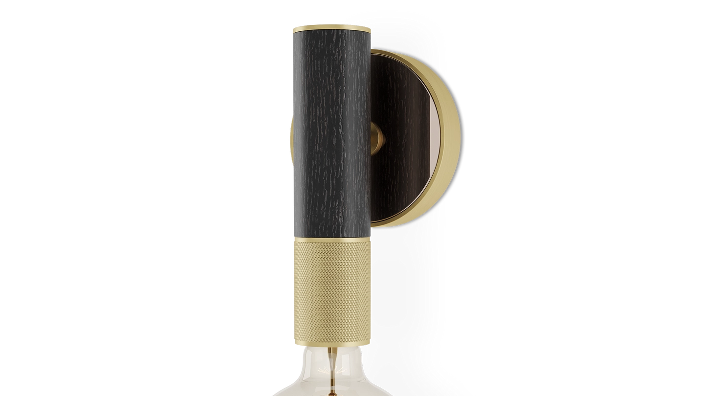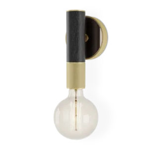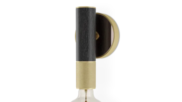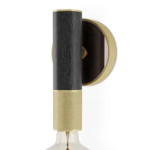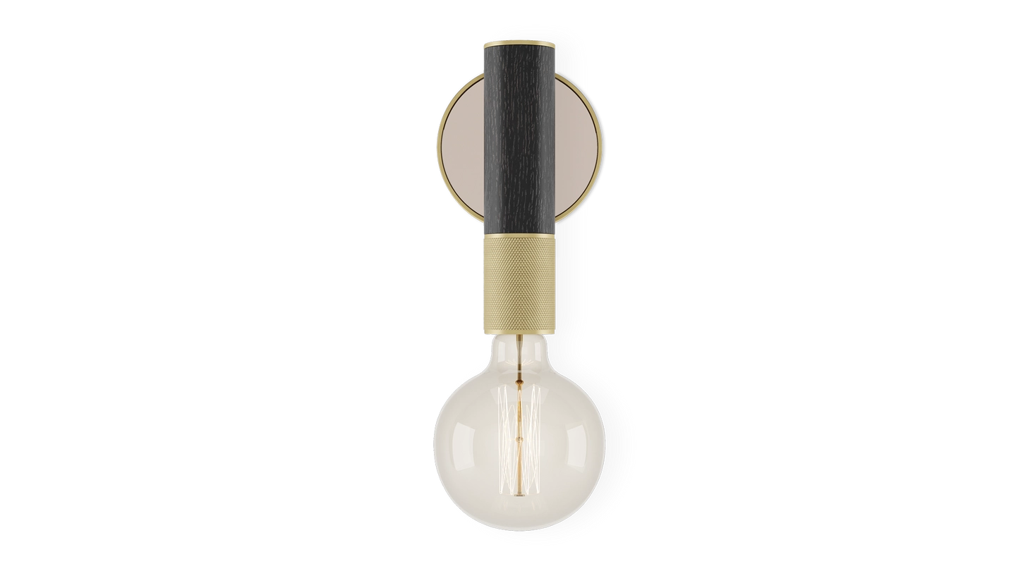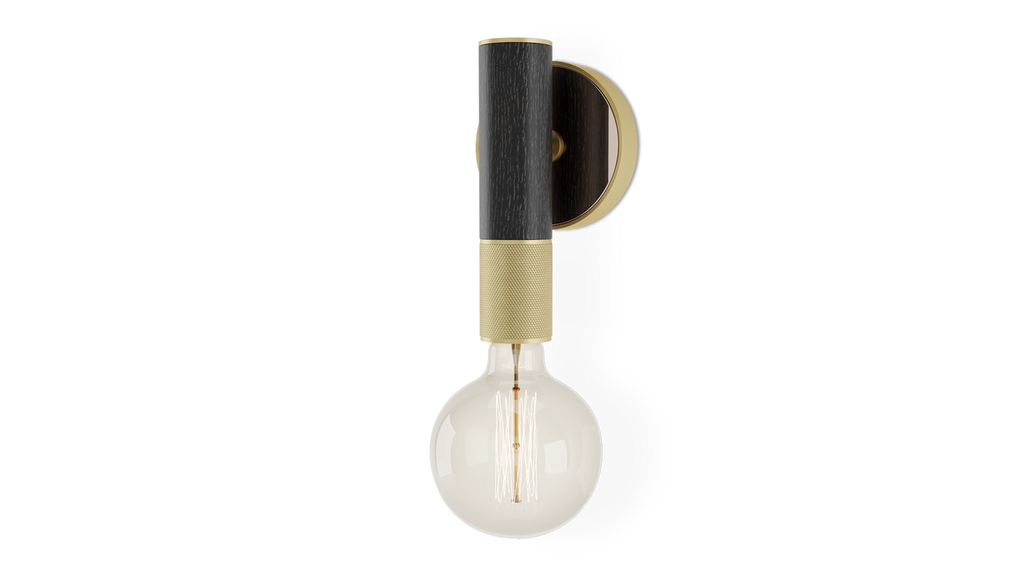 The pared-back form of the ASPEN wall lamp combines industrial influences with decorative qualities. Featuring a naked bulb, the generously proportioned structure blends a medley of solid wood, bronze mirror and brass.