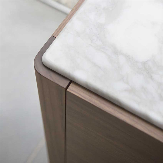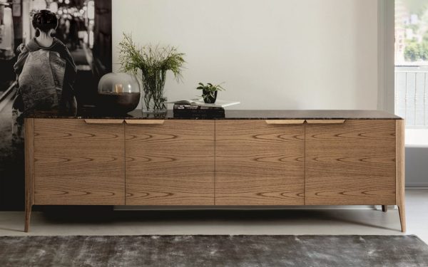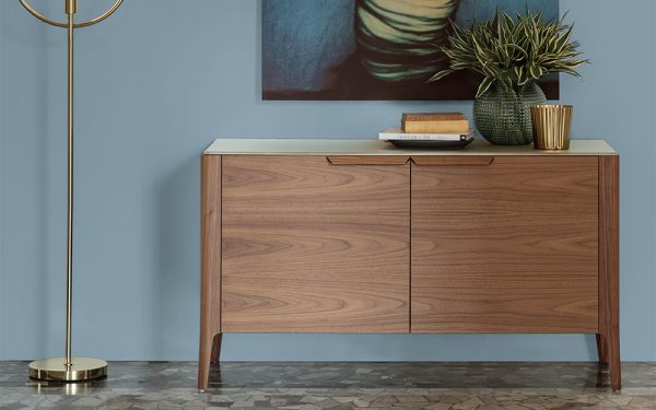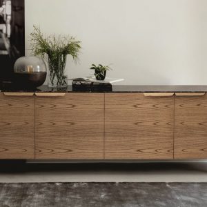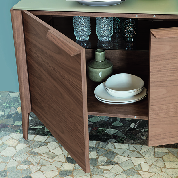 The Atlante is a stylised sideboard featuring a solid wood frame and doors with a marble, glass or matching wood top and glass internal shelves. Available as a two-door or four-door style.
